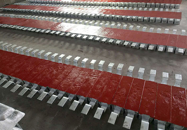 我公司按照GB/T 4948-2002研發(fā)生產(chǎn)的鋁合金犧牲陽極(簡稱:鋁陽極)適于海水介質(zhì)中的船舶、機械設(shè)備、壓載水艙、儲罐內(nèi)壁、濱海設(shè)施、海底管道、碼頭鋼樁、海洋平臺、電纜等設(shè)施金屬防腐蝕的陰極保護。